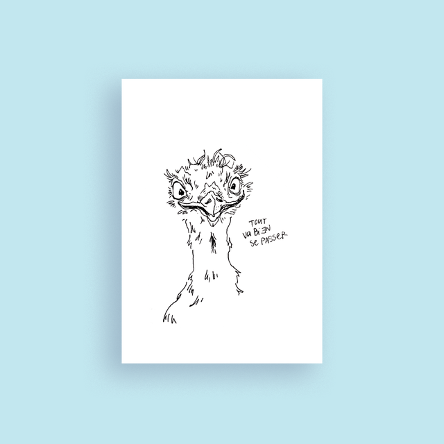 Autruche "Tout va bien se passer", carte 10,5x14,8cm